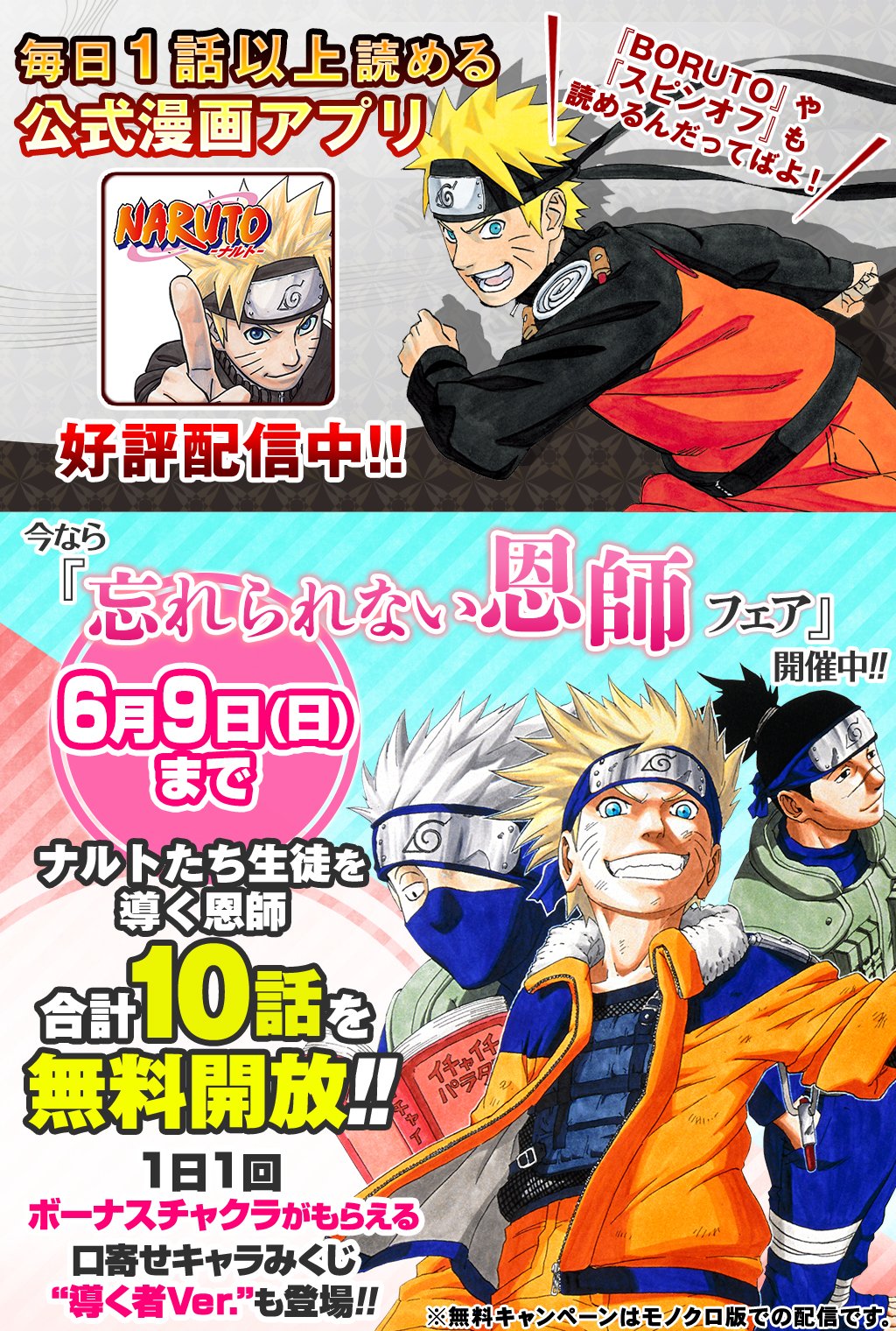 少年ジャンプニュース 公式 6 9 日 まで 毎日1話以上読める Naruto ナルト 公式漫画アプリで 忘れられない恩師フェア 開催中 今回はナルトたち生徒を導く恩師を描いた合計10話を無料配信 T Co Tf2xad0b5e ナルトアプリ Narutoアプリ